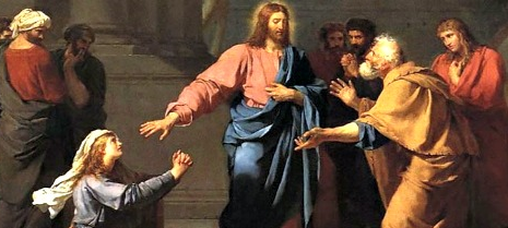 Ella lo supplicava di scacciare il demonio da sua figlia. Ed egli le rispondeva: «Lascia prima che si sazino i figli, perché non è bene prendere il pane dei figli e gettarlo ai cagnolini». Ma lei gli replicò: «Signore, anche i cagnolini sotto la tavola mangiano le briciole dei figli». Allora le disse: «Per questa tua parola, va’: il demonio è uscito da tua figlia».